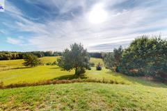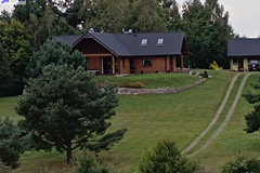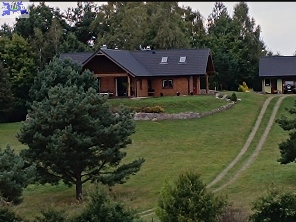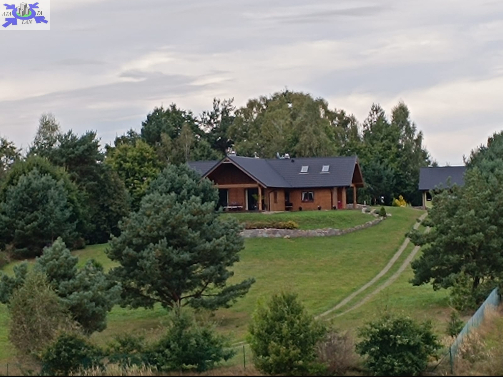 Dom położony na wzniesieniu z pięknym widokiem na lasy.