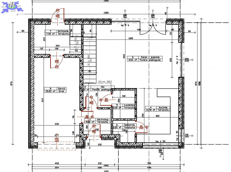 + garaż jednostanowiskowy znajdujący się w bryle budynku.
