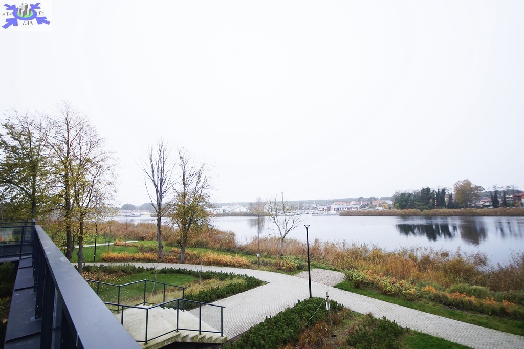 - Salon z aneksem kuchennym o powierzchni 25,8 m2 z wyjściem na balkon o powierzchni 10 m2 z bocznym widokiem na rzekę Dziwną, w pełni wyposażony w sprzęty RTV i AGD wraz z pełnym umeblowaniem widocznym na zdjęciach. Ściany gładzone i pomalowane, na podłodze laminat.