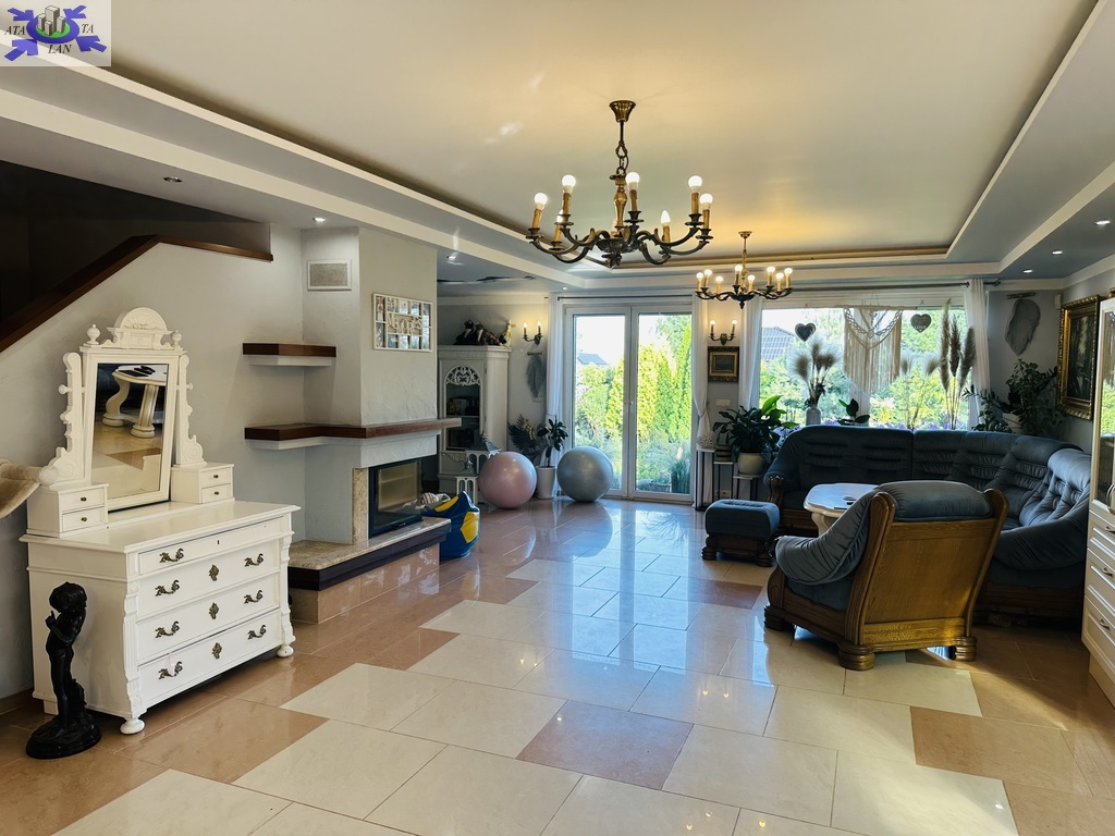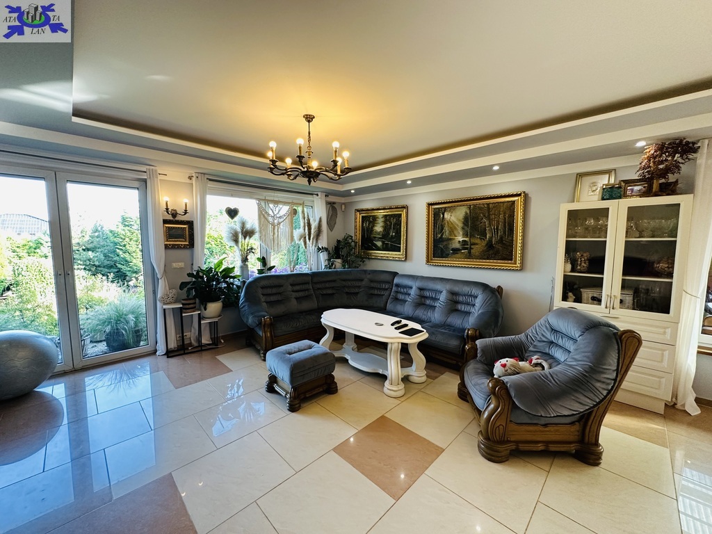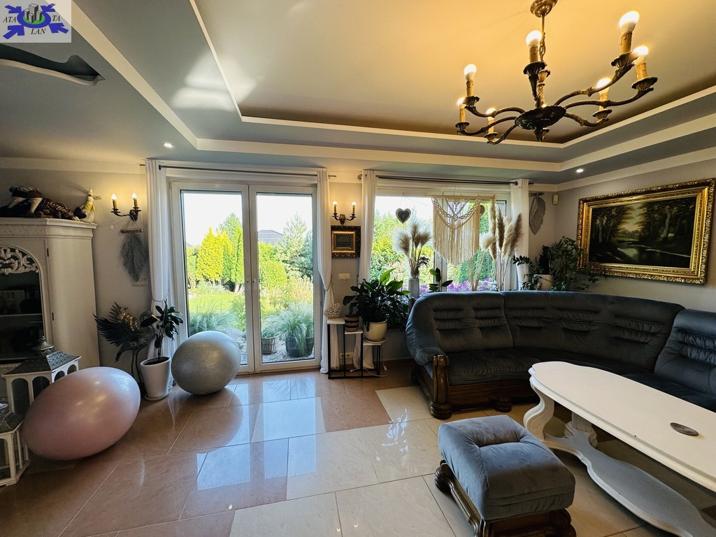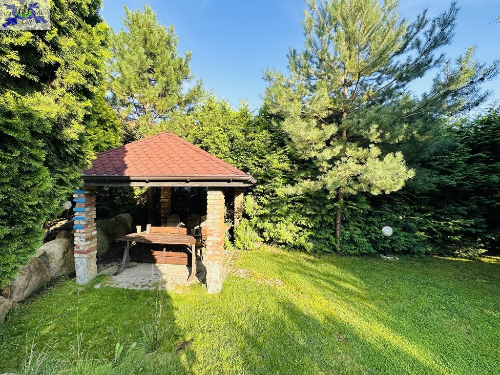 Rok budowy 2003. Pięknie zagospodarowania działka o pow. 1500 m2, liczne drzewa, nasadzenia, wydzielone miejsce do grillowania, studnia do podlewania ogrodu, domek z kominkiem. Teren ogrodzony, 2 bramy na pilota. Zewnętrzne rolety antywłamaniowe, rolety zaciemniające, fotowoltaika, system alarmowy. Garaż dwustanowiskowy.