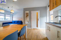 Domki na parterze składają się z pokoju dziennego z aneksem kuchennym oraz łazienki.