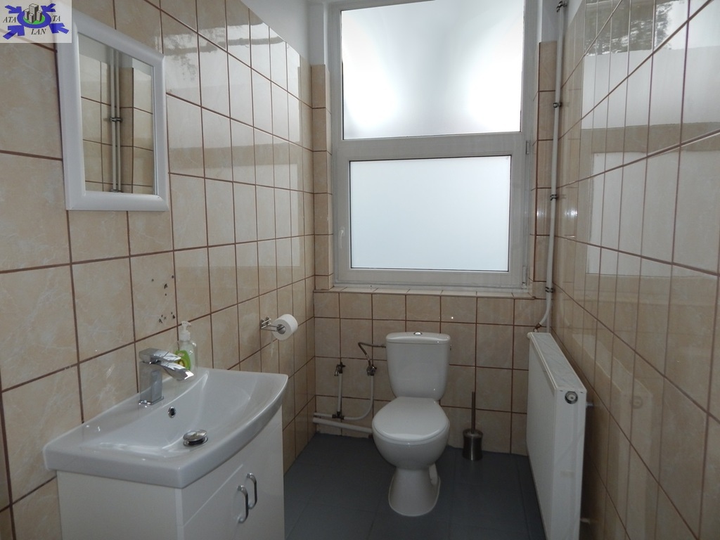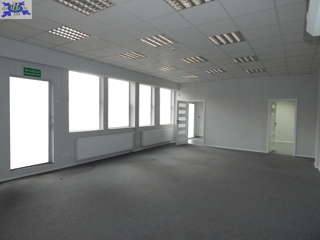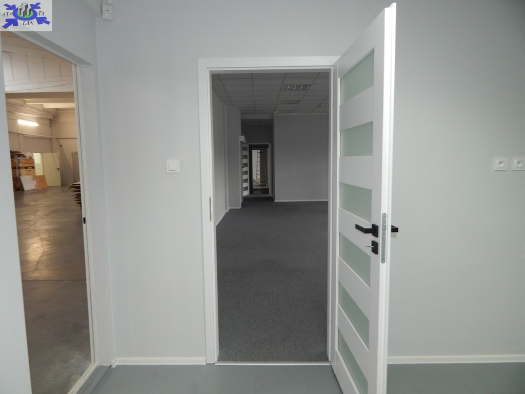 Do biur prowadzi wejście z zewnątrz oraz dwa wejścia bezpośrednio z hali. Wydzielone pomieszczenie socjalne z WC i prysznicem.