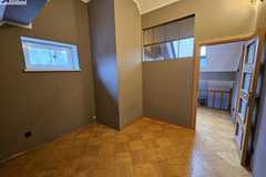 Na podłogach w pokojach panele oraz terakota w przedpokoju i kuchni. Okna pcv, na górze połaciowe drewniane.