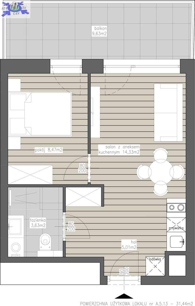 Niebywałą zaletą jest balkon o powierzchni 10 m2, oferujący dodatkową przestrzeń do zaaranżowania i relaksu. Wyjdziesz na niego z salonu i z sypialni!
