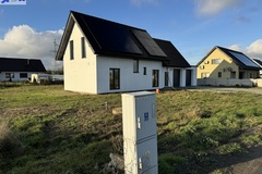 Nowy dom posadowiony jest na działce o powierzchni 1169 m2. Działka o kształcie regularnym - prostokątnym, nasłonecznienie dobre, warunki przyrodniczo-klimatyczne korzystne.