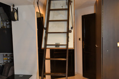 Pomieszczenie z antresolą, zabudowaną, pojemną szafą pod antresolą.