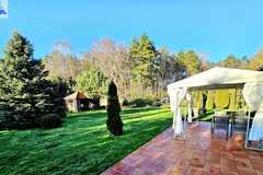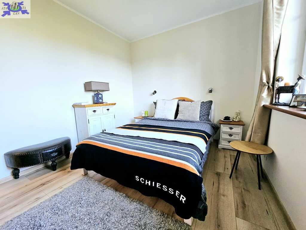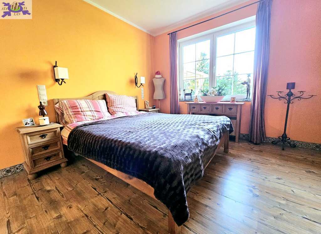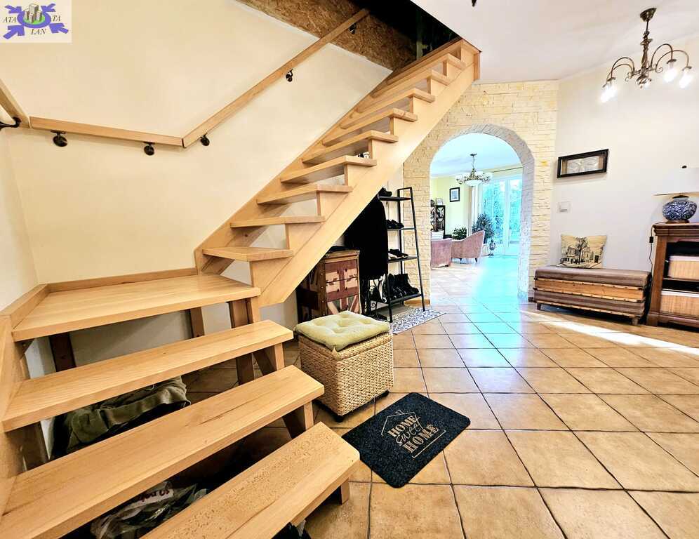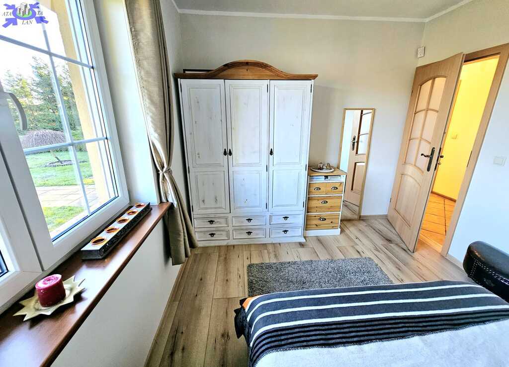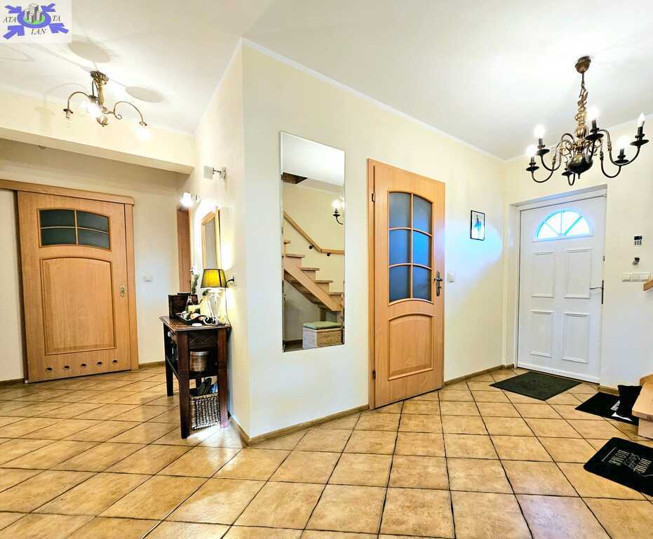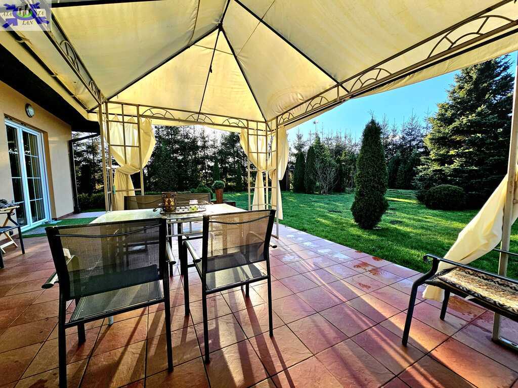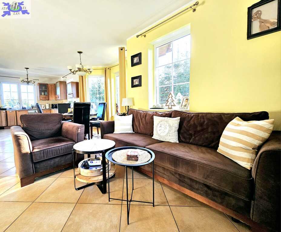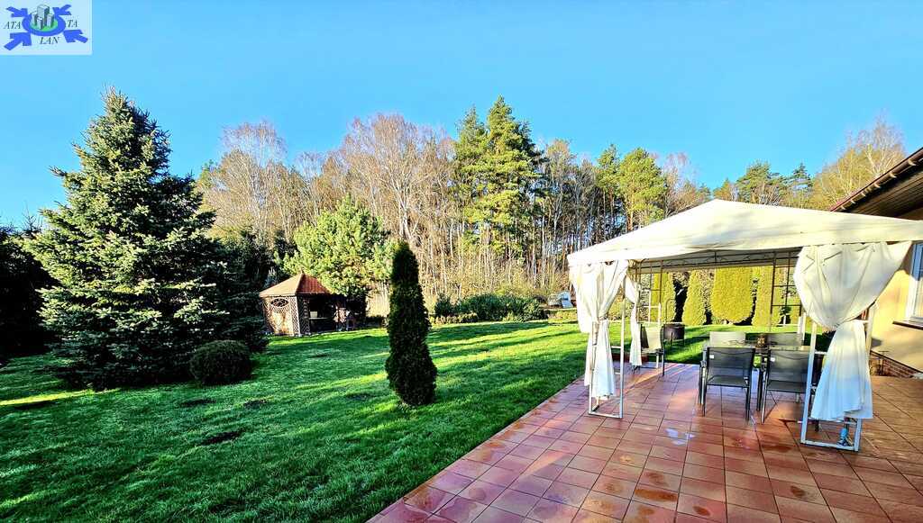 Oferujemy do sprzedaży dom wolnostojący z garażem, usytuowany w malowniczym zakątku Dobrej, bezpośrednio przy ścianie lasu. Nieruchomość położona jest na bardzo dużej działce, o łącznym metrażu około 4300 m2. Dom został wybudowany w 2008 roku z projektu ,,Dom pod Jarząbem (2G)". Powierzchnia użytkowa nieruchomości wynosi 148,9 m2, a całkowita 182,4 m2. Na parterze domu, znajdziemy otwartą kuchnię połączoną z salonem, z którego wychodzi się na duży, zagospodarowany taras i dalej na ogród, 3 sypialnię, łazienkę z WC, pomieszczenie gospodarcze z kolejnym WC oraz korytarz. Poddasze użytkowe aktualnie zamknięte i nieużytkowane (z możliwością zaaranżowania i zamieszkania). Ogrzewanie i ciepła woda zasilane z pieca gazowego. Dodatkowo, możliwość ogrzewania elektrycznego (zainstalowana podłogówka na całej powierzchni domu) oraz z kominka kaflowego. W cenie nieruchomości pozostają wszystkie zabudowy stałe wraz z umeblowaniem kuchennym i łazienkowym, reszta rzeczy do ustalenia. W bryle budynku, również garaż jednostanowiskowy oraz duży, zagospodarowany taras z pergolą, krzesłami i stołem. Największym atutem nieruchomości - lokalizacja - w malowniczym miejscu, pod samą ścianą lasu oraz bardzo duża działka (około 4300m2). Na jej terenie 2 duże szklarnie, krzewy z borówką amerykańską oraz oczko wodne z wieloma nasadzeniami. Podlewanie ogrodu sterowane elektronicznie. Cicha okolica, zapewniająca spokój i relaks jej mieszkańcom, a w sąsiedztwie jedynie zabudowa jednorodzinna i bliźniacza. Idealne miejsce dla osób ceniących ciszę, spokój oraz prywatność lub pod inwestycję, z uwagi na bardzo dużą działkę.