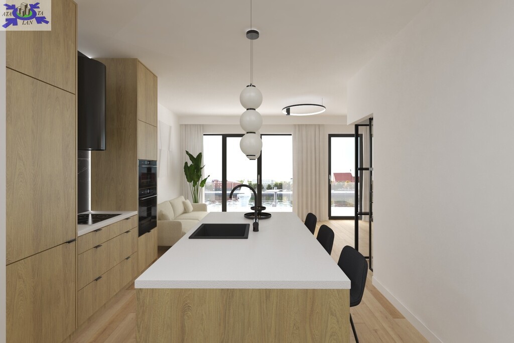 Mieszkanie posiada duży balkon od strony rzeki z widokiem na wodę i miasto.