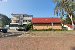 Obecnie zabudowany pawilonem handlowym w zabudowie bliźniaczej z dobudówką.