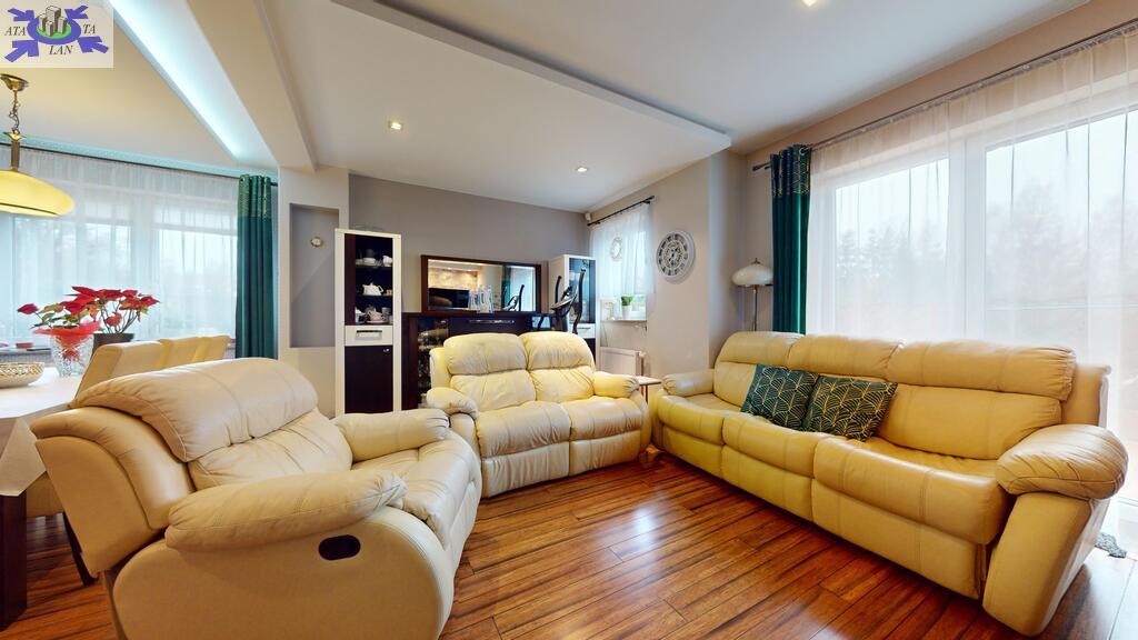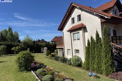 Oferujemy na sprzedaż przestronny dom w zabudowie bliźniaczej o powierzchni całkowitej 174 m2, z salonem z kominkiem, tarasem, położony na pięknej, dużej działce o powierzchni 673 m2.