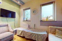 - Pomieszczenia 5 pokoi (salon, 3 sypialnie, biuro) w tym 1 w przyziemiu jako biuro, kuchnia, 2 łazienki, garaż, pomieszczenie techniczne z kolejną toaletą.Rozkład