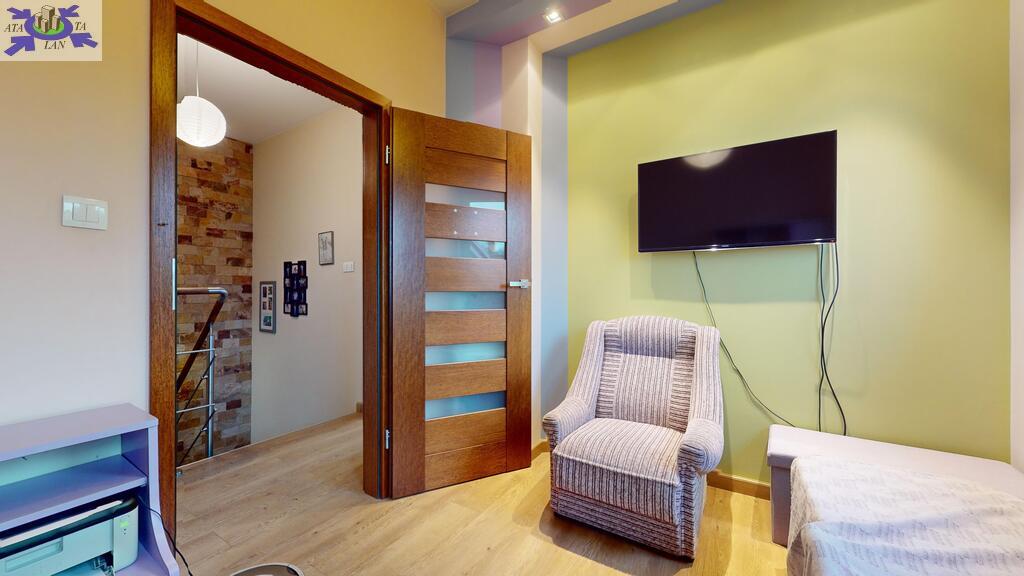 - Piętro 3 sypialnie w tym jedna duża z garderobą, łazienka z pralką i wanną, nieduży balkon.