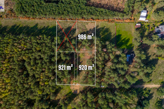 To tutaj mamy dla Ciebie 3 niezależne działki, o powierzchniach 986 m2, 921 m2 oraz 920 m2.
