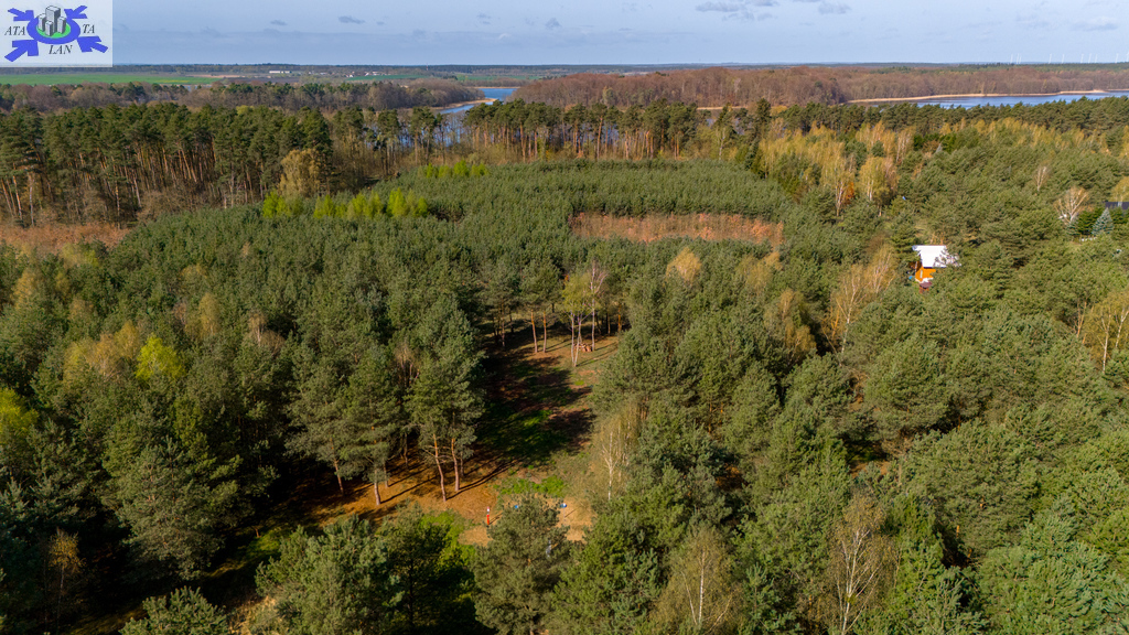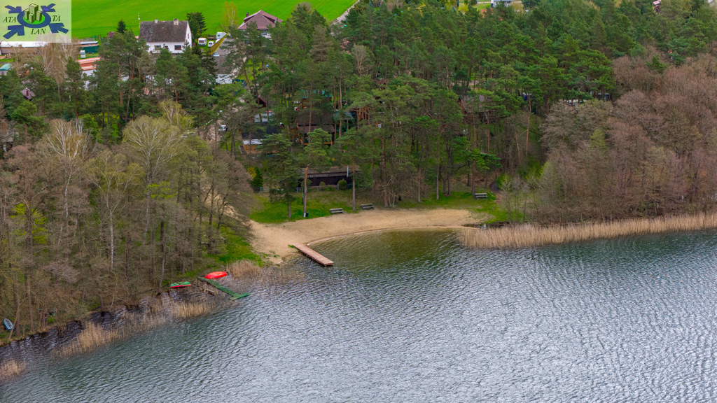 Działki otoczone są lasem, a to ostatnia linia zabudowy ze ślepą drogą. W odległości 300 m znajduje się jezioro z zagospodarowaną plażą.
