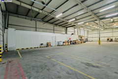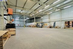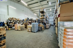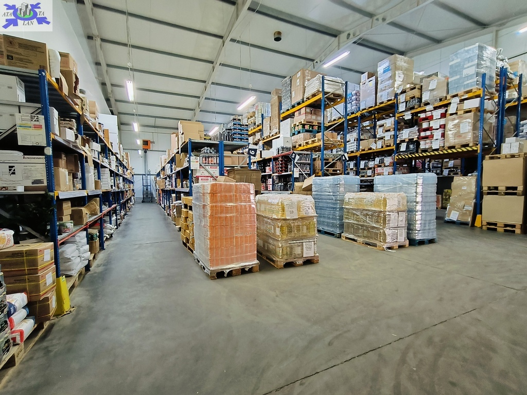 Dach i ściany hali magazynowej wykonane z płyt warstwowych. Posadzka betonowa, bezpyłowa.
