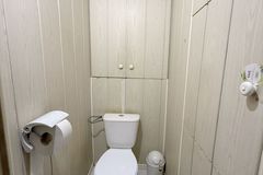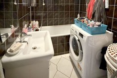 Łazienka i wc osobno. Łazienka w glazurze i terakocie. W wc na podłodze terakota, na ścianach panele.