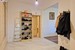 * funkcjonalny przedpokój z dużymi, drewnianymi szafami w zabudowie