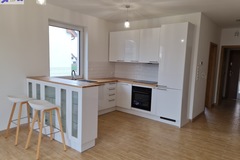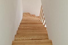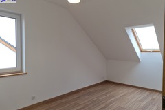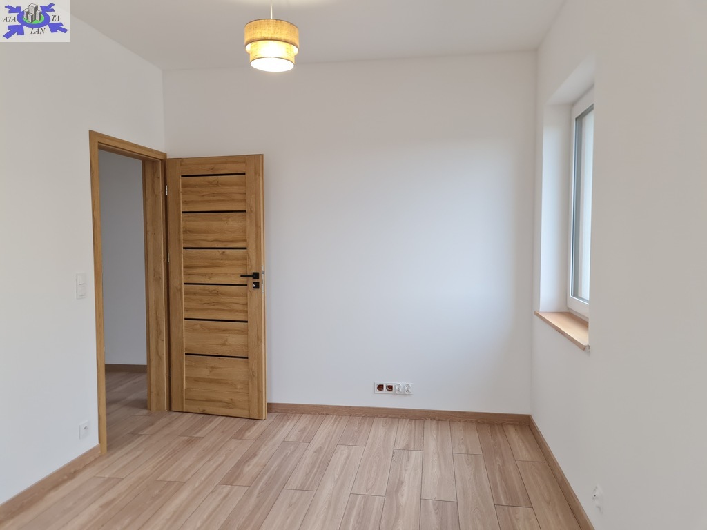 Dom składa się z salonu otwartego na kuchnię, sypialni, łazienki i hollu oraz na piętrze znajdują się z dwa rozkładowe sypialnie i łazienka.