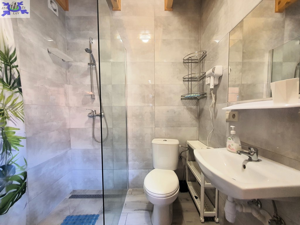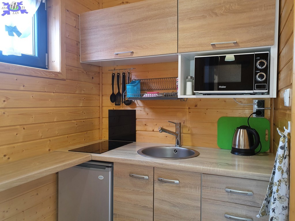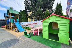 Do budynku przylega część gospodarcza o pow. 11 mkw w której znajduje się łazienka, aneks kuchenny i sofa dla osoby nadzorującej funkcjonowanie obiektu (chęć pozostania na stanowisku i wspierania nowego właściciela we wszelkich sprawach organizacyjnych).