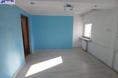 W kuchni na podłodze panele, ściany wygładzone i pomalowane