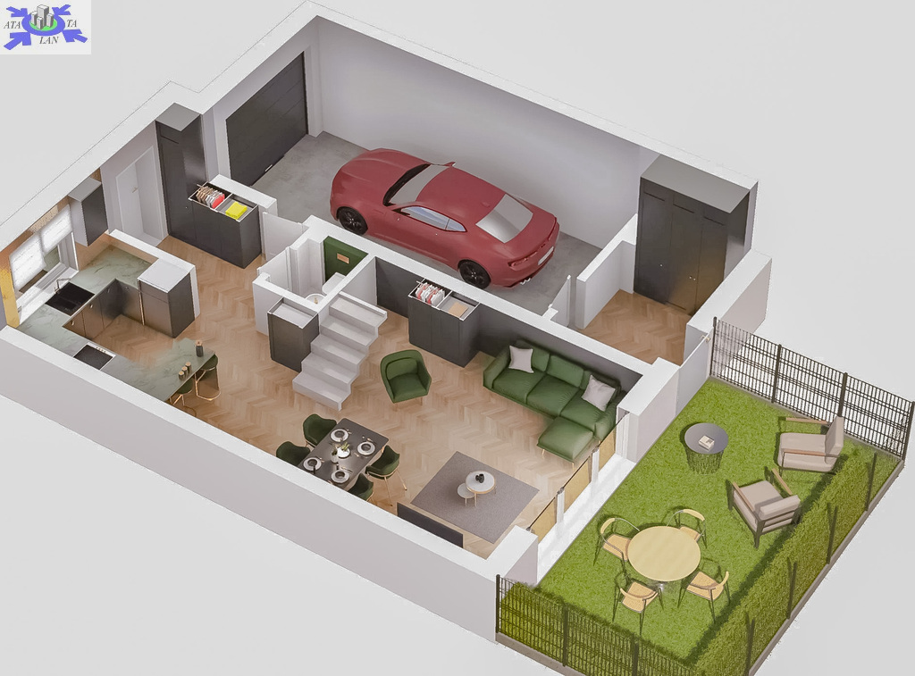 -dojście do budynku i wjazd do garażu wykonane są z kostki brukowej