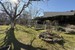 Plac wokół budynku wyłożony polbrukiem, za budynkiem ogród.