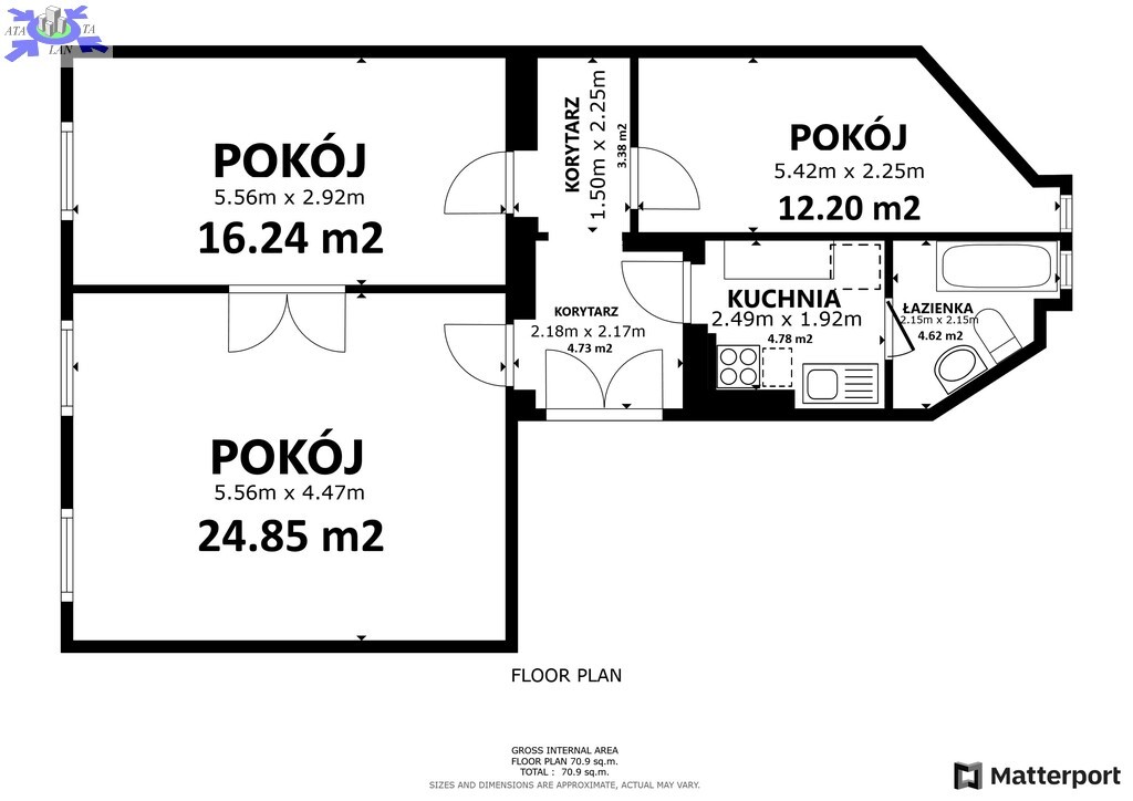 Mieszkanie ma powierzchnię 64,82 m2 i składa się z 3 pokoi, kuchni, łazienki z wc oraz przedpokoju ( przedpokój 6,40 m2/pokój nr 1 - 24,60 m2/pokój nr 2 -16 m2/pokój nr 3-10,10 m2/ kuchnia - 4,70 m2/ łazienka z wc-3,02 m2). W lokalu zostały zachowane stare podłogi (deska poniemiecka), oryginalna stolarka drzwiowa i okienna, przedwojenna sztukateria )