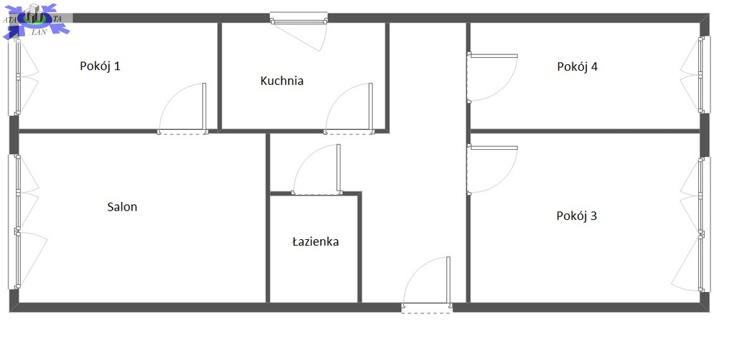 - 4 pokoje z czego jeden przechodni - istnieje możliwość usunięcia ściany i stworzenia bardzo przestronnego salonu.