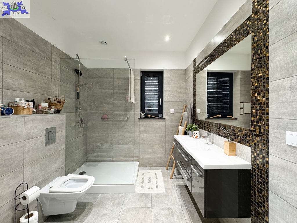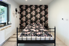 Dwie sypialnie, przedpokój, łazienka z prysznicem oraz osobne WC, pomieszczenie gospodarcze (kotłownia, pralnia, suszarnia)- stanowią drugą część domu.