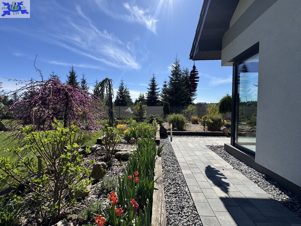 Parterowy nowoczesny dom posadowiony na pięknie zagospodarowanej działce o powierzchni 1281 m2.