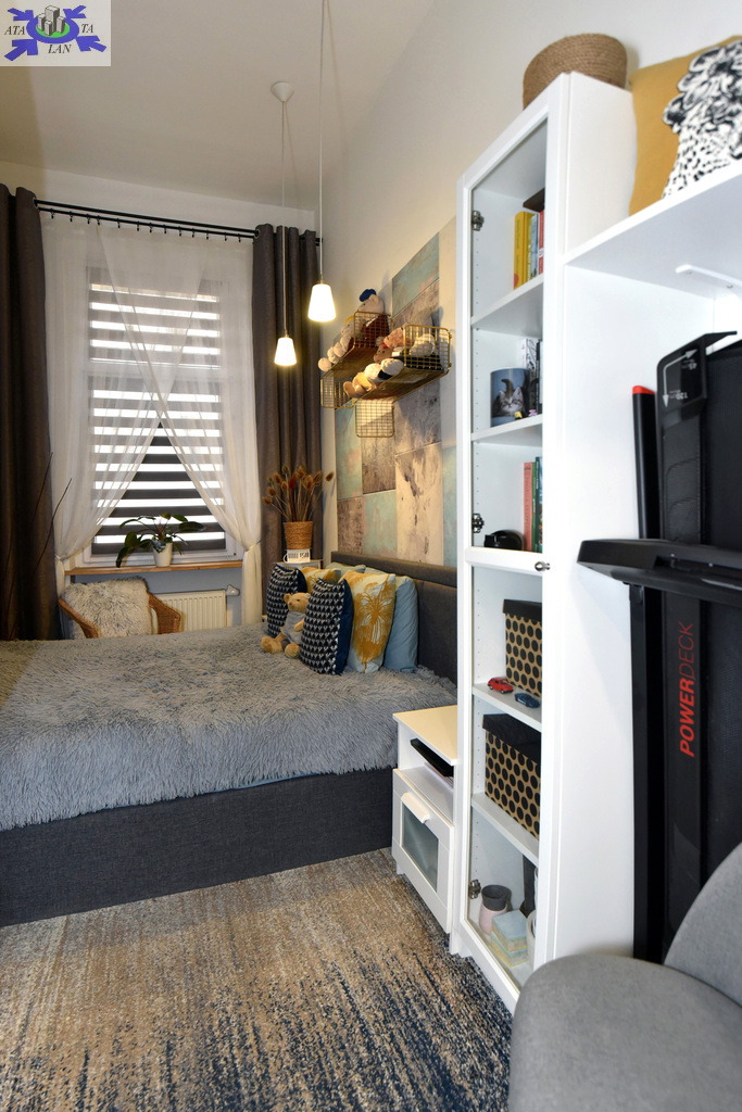 Salon Przestronny, z dużym oknem. Obecnie wyposażony w narożną sofę i stół z krzesłami - idealne miejsce do relaksu i wspólnych posiłków.Kuchnia W pełni wyposażona, funkcjonalnie zaprojektowana z meblami w zabudowie.Sypialnia Przytulny pokój z oknem na zadbane podwórze, idealne miejsce na wygodne łóżko.Pokój 1 oraz Pokój 2 Doskonałe jako pokój dla dziecka lub biuro.Łazienka Z oknem, wyposażona w kabinę prysznicową i nowoczesne elementy, zaprojektowana dla komfortu użytkowania. Wejście do łazienki przez kuchnię.Hall Szeroki korytarz z dużą, sześciodrzwiową szafą, miejscem na wieszak i komodę na buty.