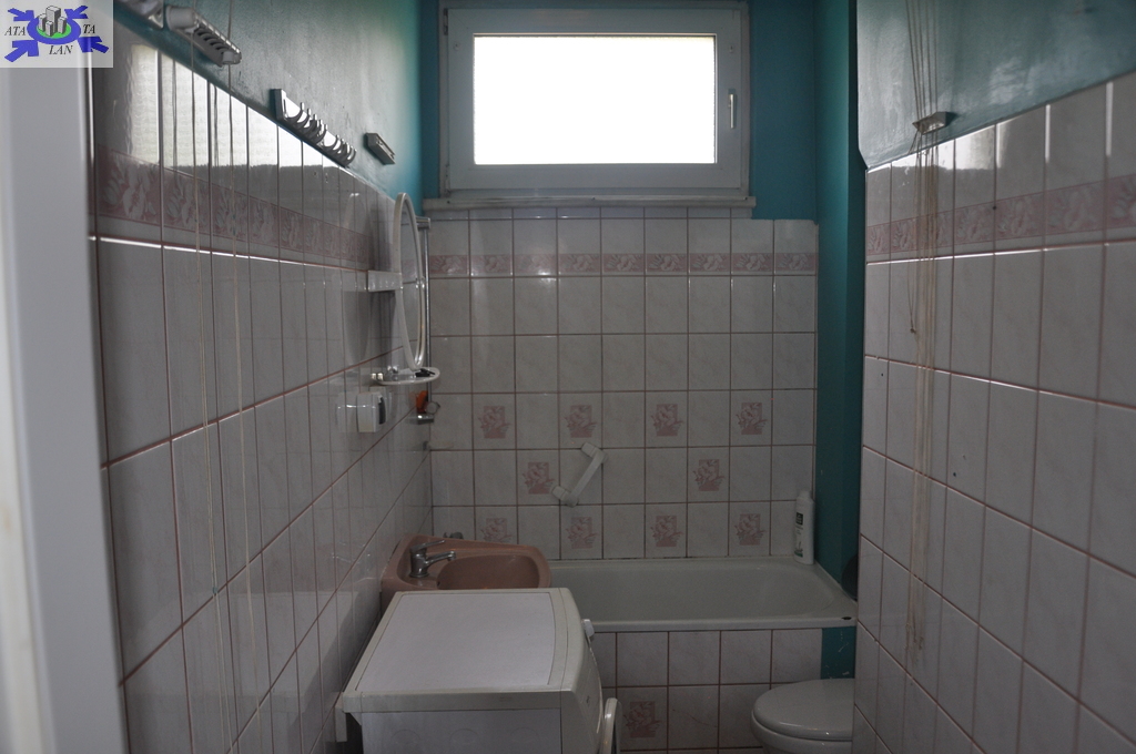 - łazienka z oknem, z wanną, razem z wc (pralka)