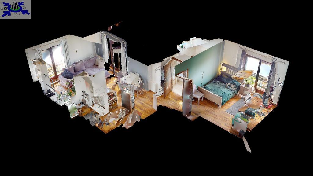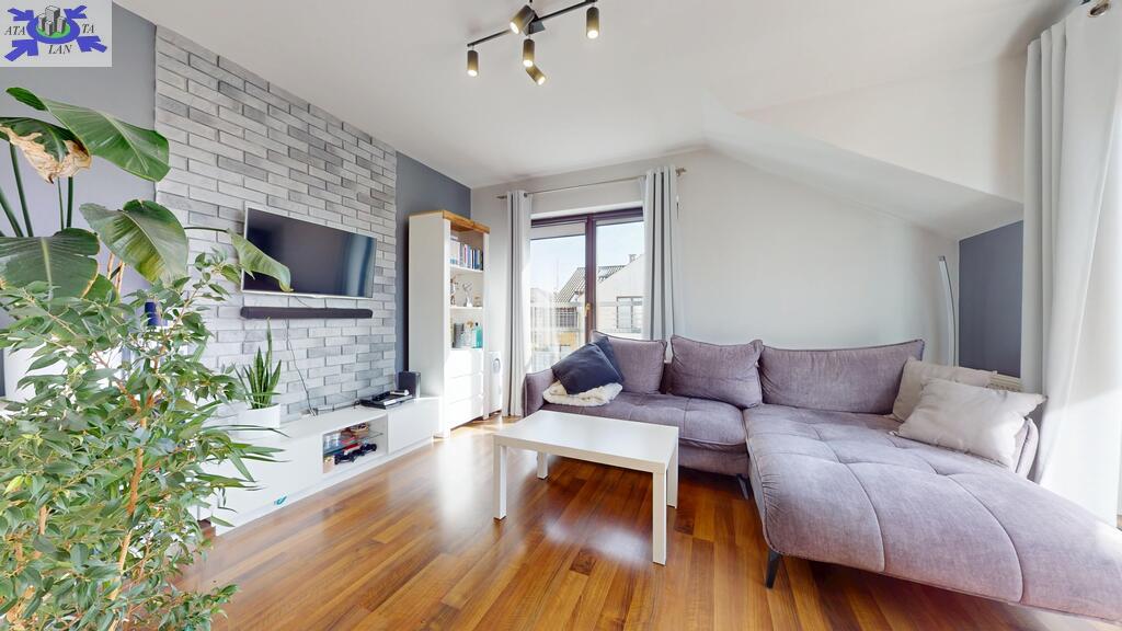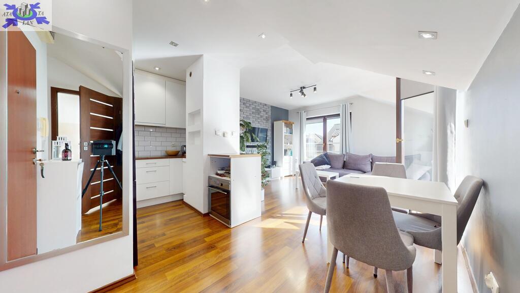 Mieszkanie położone na 2 piętrze o powierzchni użytkowej 45,3 m2, całkowitej ok. 50 m2, do którego przynależy ok. 9 m2 strych z wejściem po drabince z pokoju.