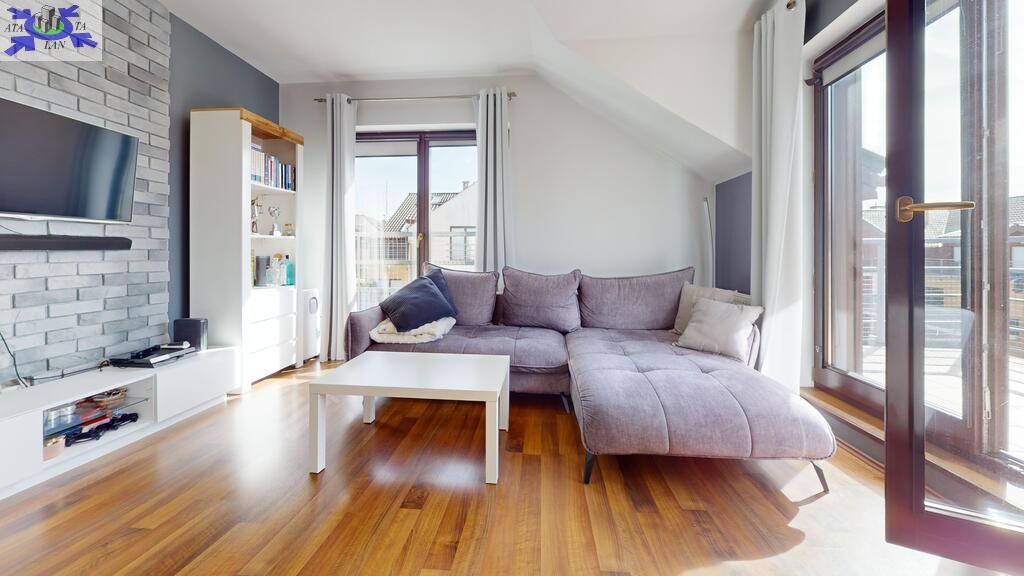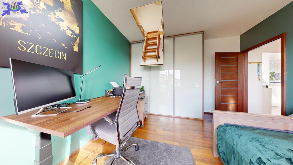 - strychu funkcjonującego jako pomieszczenie do składowania, ale jest wyposażone w okno połaciowe, połacie są obłożone płytami karton-gipsowymi oraz wylana jest posadzka betonowa, więc jest możliwość zaadoptowania jako dodatkowe pomieszczenie o funkcji mieszkalnej,