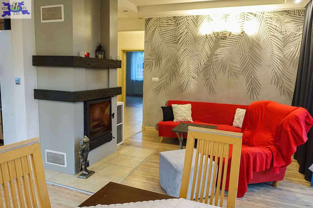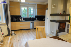 PARTER salon 24 m2 z wyjściem na taras drewniany o pow. ok. 15 m2 i dalej do pięknie utrzymanego ogrodu z drzewami i krzewami oddzielającymi ogród od ulicy i sąsiednich budynków. Salon otwarty na aneks kuchenny o powierzchni 6 m2 z nowoczesną zabudową i urządzeniami AGD dodatkowo kominek z płaszczem wodnym. 2 pokoje 14,4 m2 i 15,3 m2. Hall 5,39 m2, łazienka 5,12 m2, klatka schodowa 5 m2, sień 3,69 m2. W łazience wanna i toaleta z umywalką. Ogrzewanie elektryczne i kominkowe.
