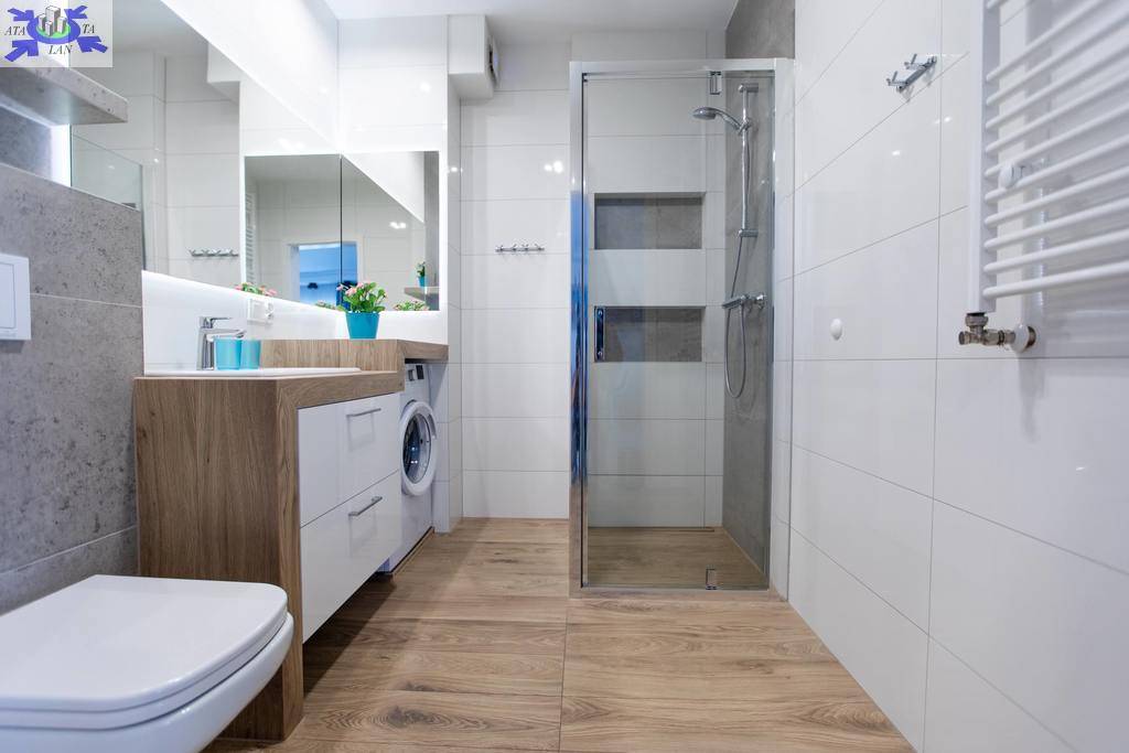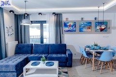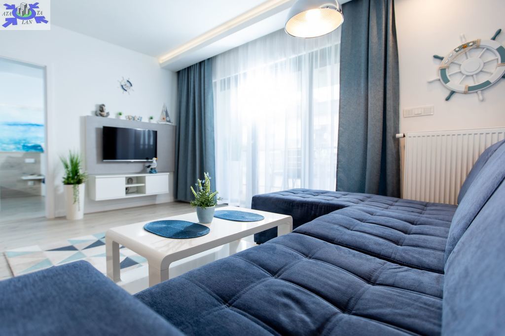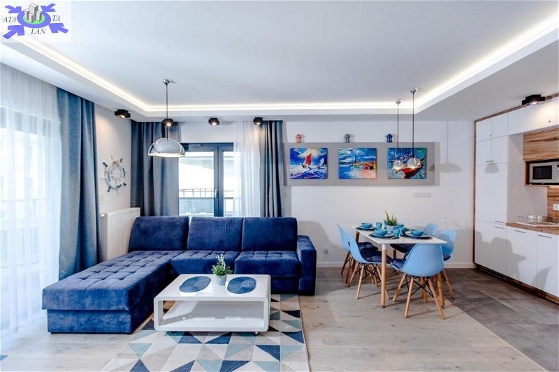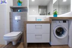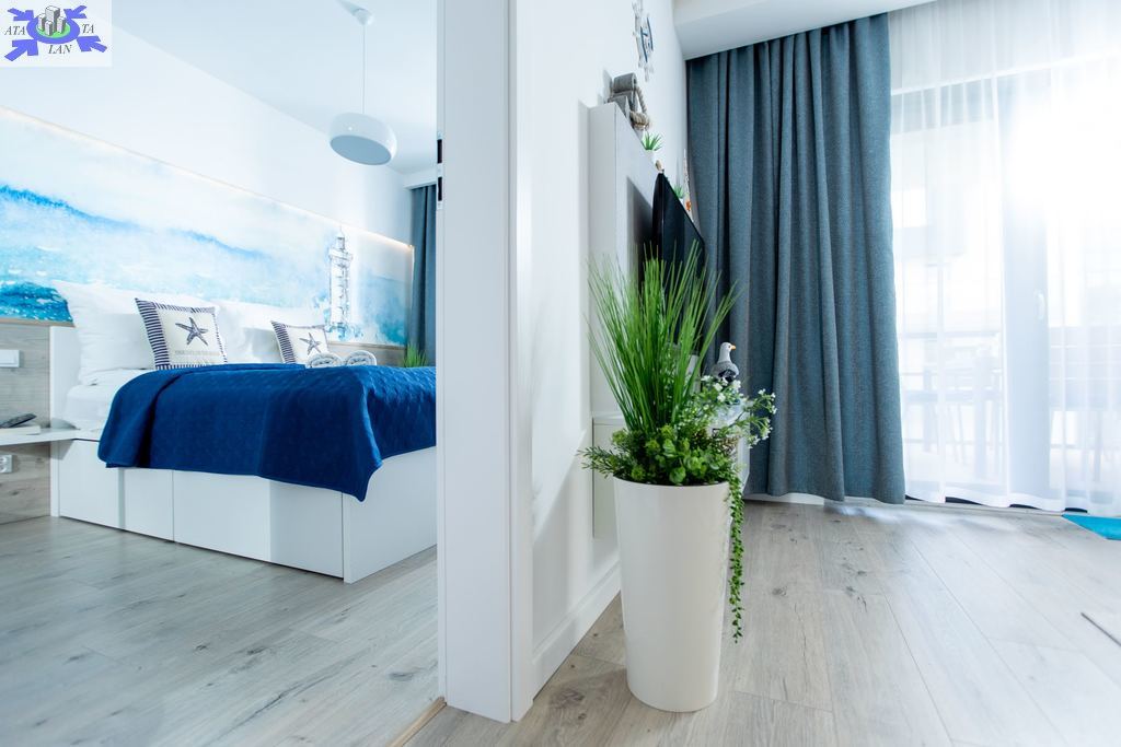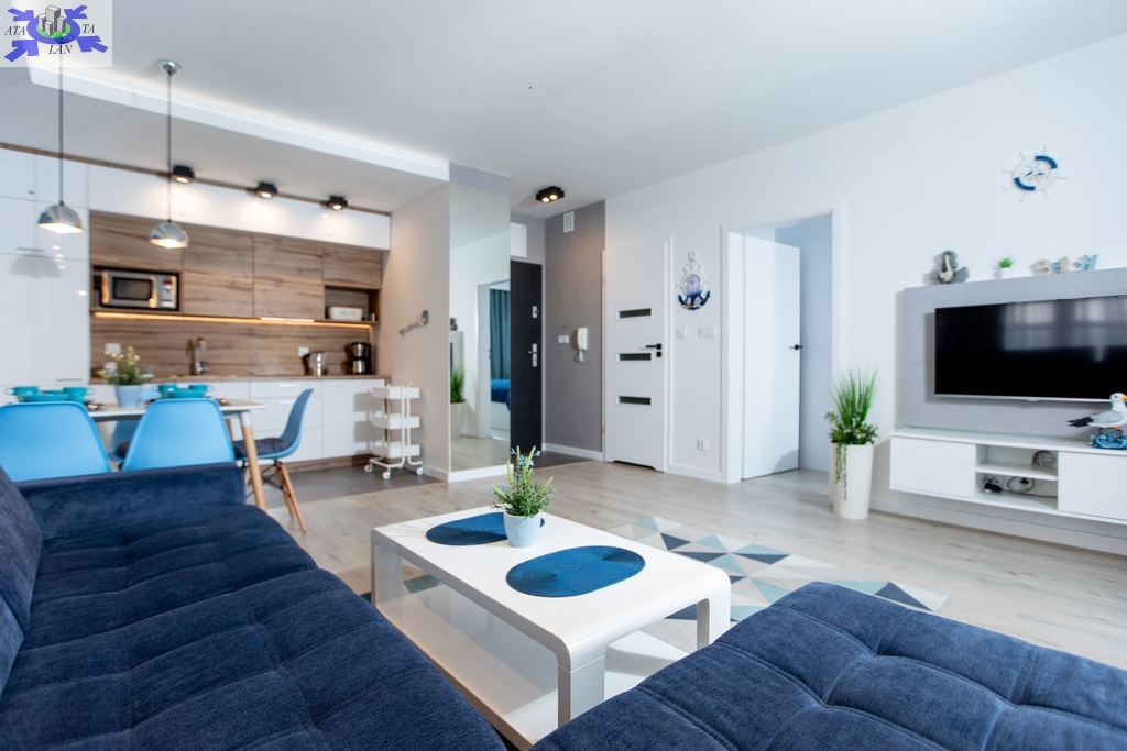 Apartament jest nowocześnie wykończony, z przestronną łazienką oraz kompletnie wyposażonym i umeblowanym aneksem kuchennym .