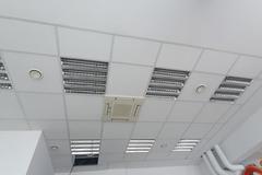 Na podłodze terakota, ściany malowane, sufity podwieszane z zamontowanym oświetleniem rastrowym. W lokalu rozprowadzono instalację klimatyzacji (nie ma tylko jednostki centralnej), instalację alarmową (wraz z kamerami monitoringu) oraz sieć komputerową.