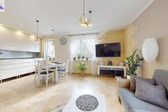 Zbywana nieruchomość ma powierzchnię 66, 70 m2 i składa się z czterech rozkładowych pokoi, przedpokoju, oddzielnej łazienki i wc. Mieszkanie zostało urządzone w nowoczesnym stylu z dbałością o detale. Przestronny salon połączony z kuchnią tworzą otwartą i funkcjonalną przestrzeń tworząc strefę relaksu oraz wypoczynku. Przestrzeń jest bardzo doświetlona, okna w mieszkaniu wychodzą na trzy strony świata - standard mieszkania foto.