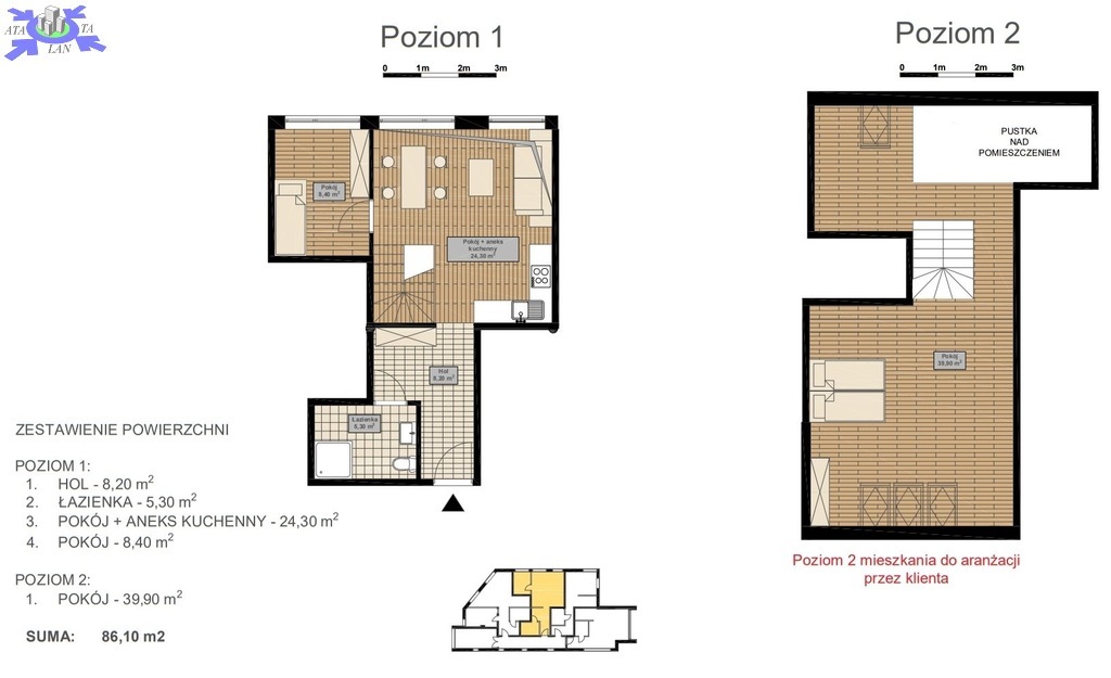 Lokal biurowy dwupoziomowy, położony na 2 piętrze w budynku biurowym z 2021r. przy ul. Wiosennej w Dąbiu. Budynek 3-piętrowy z windą. Przestronne klatki schodowe, stolarka okienna częściowo aluminiowa, częściowo PCV. Drzwi zewnętrzne o podwyższonej odporności na włamanie i o podwyższonej izolacyjności akustycznej. Wszystkie ściany pomiędzy lokalami i klatką schodową murowane z dodatkowym systemem akustycznym. W skład mieszkania wchodzi I poziom 44,08m2 - salon z aneksem kuchennym ok. 24 m2, pokój ok. 8m2, łazienka z wc ok. 5 m2, II poziom - pokój (39,27 m2). Lokal wykończony. Możliwość dowolnej aranżacji wnętrza z uwagi na konstrukcję szkieletową całego budynku. Wydana decyzja o pozwoleniu na użytkowanie. Opłaty do zarządcy w trakcie ustalania. Indywidualne opomiarowanie prąd, zimna woda, ciepła woda miejska, ogrzewanie miejskie, internet przez światłowód. Możliwość zamontowania klimatyzatora na ścianie budynku oraz dokupienia miejsca postojowego przy budynku za dodatkową opłatą 30 tys zł. Cena netto, do negocjacji, plus 23% Vat. Przy podpisaniu umowy sprzedaży, opłata do biura nieruchomości.