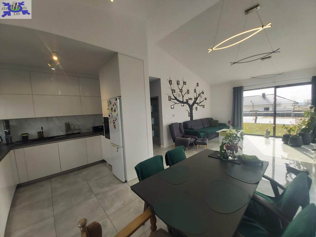 Jadalnia połączona z salonem, tworzy otwartą przestrzeń, która sprzyja spotkaniom rodzinnym i towarzyskim.