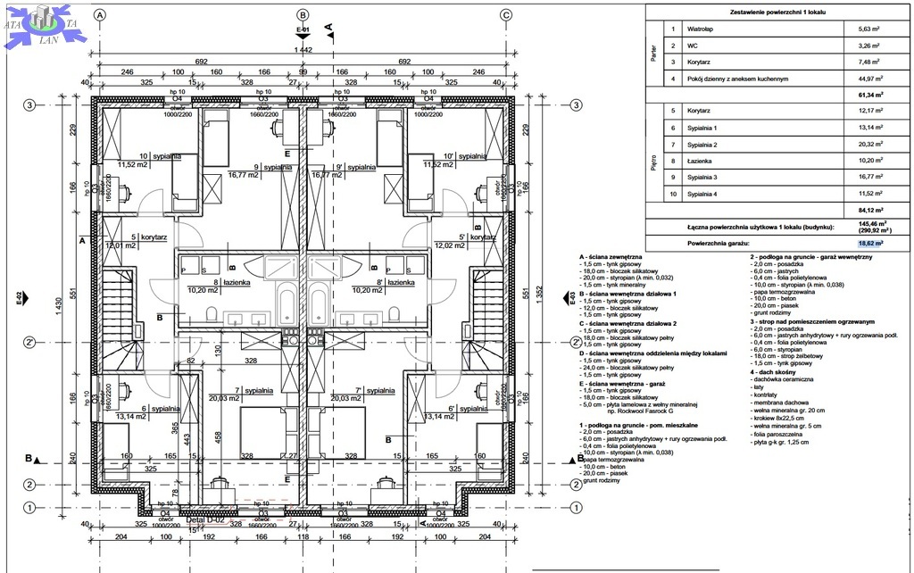 Łącznie 145,46 m2 + Garaż 18,62 m2.