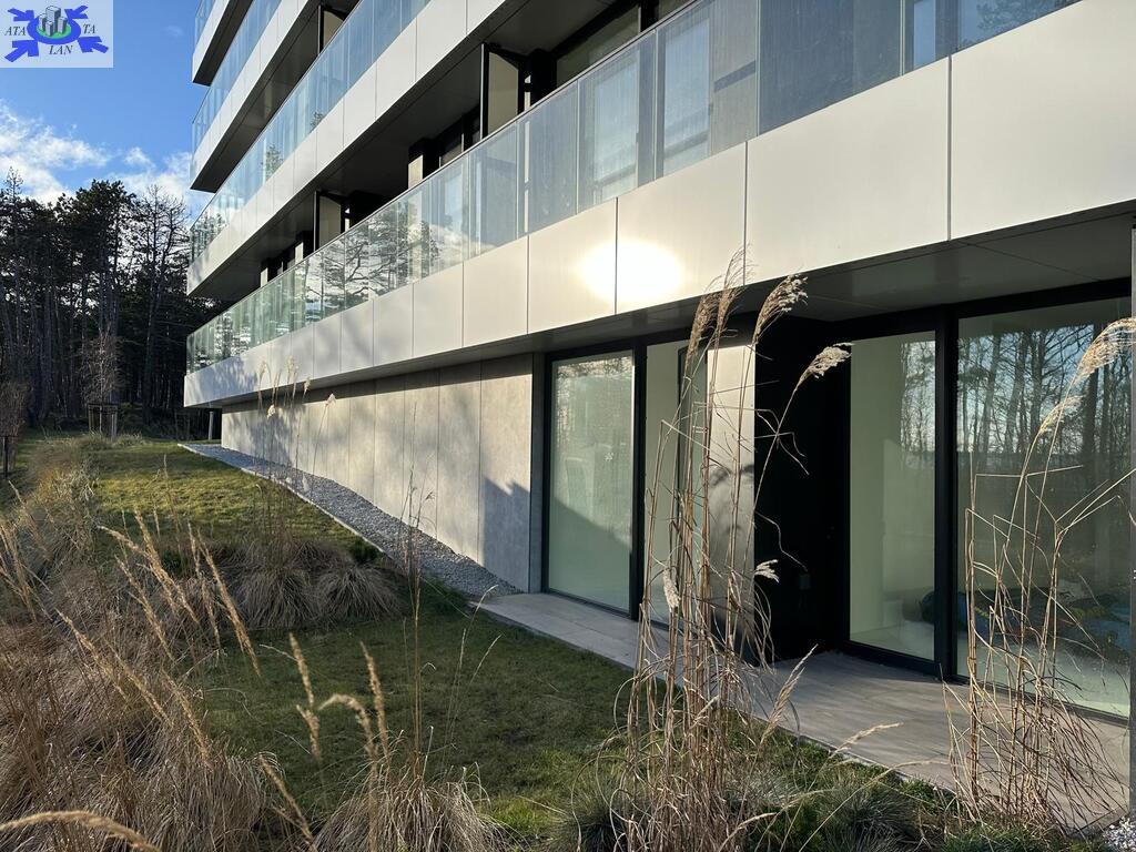Oferujemy wyjątkowy apartament o powierzchni 33,84 m2, usytuowany na parterze, z bezpośrednim wyjściem z salonu i sypialni do prywatnego ogródka z widokiem na jezioro. Południowa ekspozycja okien gwarantuje doskonałe nasłonecznienie przez cały dzień.
