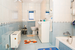 Na podłogach w pokojach i przedpokoju panele, kuchnia i łazienka - terakota.