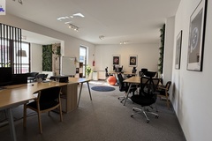 W skład lokalu wchodzi open space z możliwością jej podzielenia. Dodatkowa przestrzeń to pokój socjalny wyposażony w lodówkę, zlew, zmywarkę i szafki kuchenne oraz toaletę. Na życzenie istnieje możliwość pozostawienia umeblowania za dodatkową opłatą.