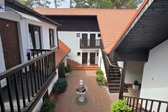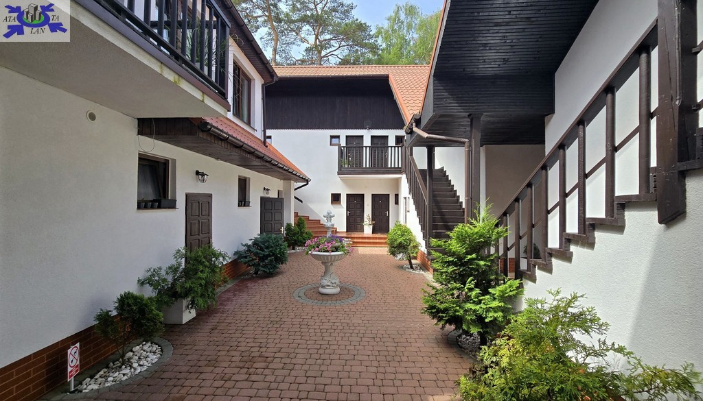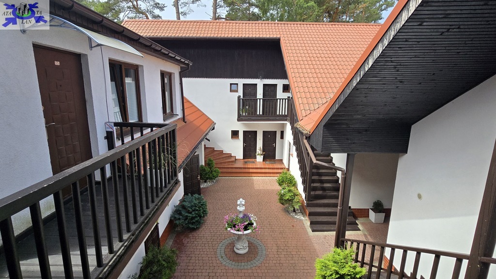 Pensjonat to kompleks 3 połączonych budynków o powierzchni użytkowej ok. 440 m2 z wewnętrznym patio oraz ogródkiem z miejscem do grillowania, placem zabaw i wypożyczalnią rowerów.
