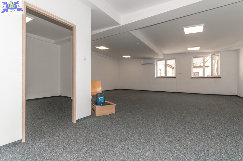 Pomieszczenia wyremontowane, gotowe do przejęcia przez najemcę od zaraz. Ściany odmalowane na biało, na suficie ładne oświetlenie, na podłodze nowe wykładziny dywanowe.