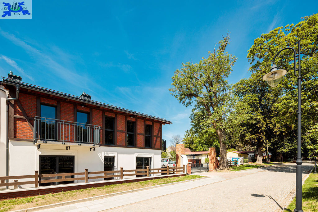 Proponowany apartament jest częścią inwestycji obejmującej 24 apartamenty o powierzchni od 29 m2 do 66,5 m2. Budynek stoi w miejscu pałacowej stajni i jest połączeniem nowoczesności z klimatem pobliskiego pałacu. Mur pruski oraz liczne drewniane elementy przepięknie nawiązują do byłej oraz istniejącej zabudowy.
