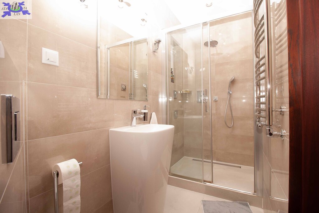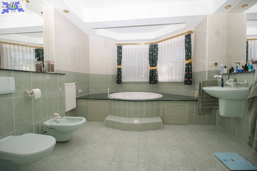 -Komfortowa łazienka z wanną z hydromasażem, dwiema umywalkami, glazurą i terakotą (10,54 m2).