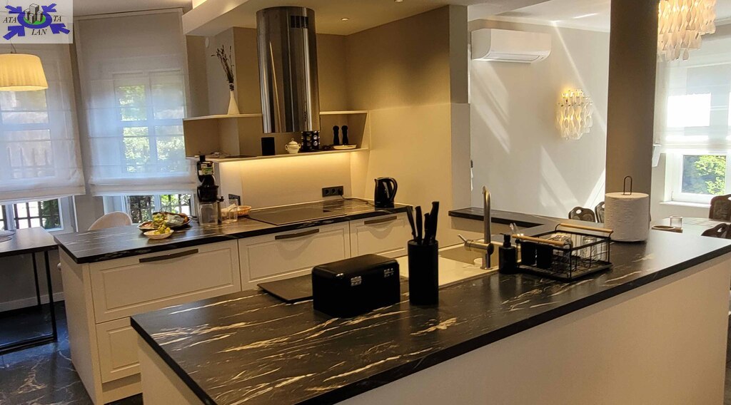 Dom został zaprojektowany i wykończony z pomocą architekta przy użyciu najwyższej jakości materiałów. Wnętrza urządzono ze smakiem i dużą dbałością o detale - oświetlenie, armatura łazienkowa oraz elementy dekoracyjne zostały sprowadzone z Hiszpanii, Włoch i Niemiec. Zasłony wykonane są z jedwabiu, a całe widoczne na zdjęciach wyposażenie może pozostać w cenie nieruchomości.