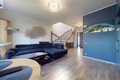 Dom zbudowany w 2017 roku na działce 176m2 jako ostatni bliźniak w ślepej uliczce osiedla zapewnia spokój od miejskiego hałasu i zgiełku ulicy.